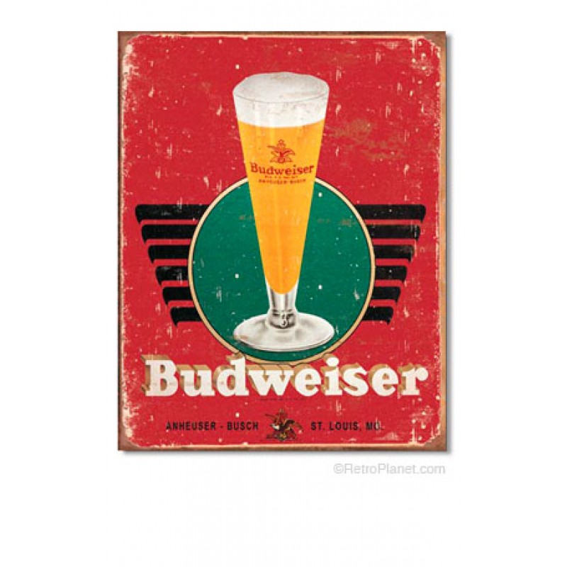 Budweiser Anheuser-Busch Vintage Glass Tin Sign